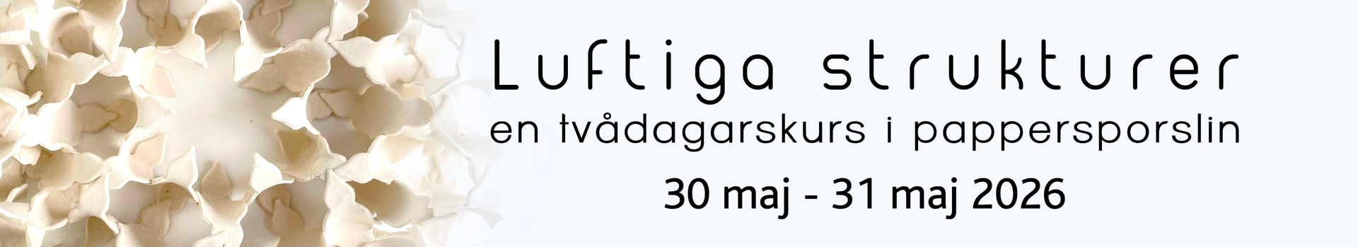 Skapa vackra, luftiga verk i pappersporslin med ledning av konstnären och keramikern Edit Szabó. Upptäck ett hållbart tillvägagångssätt för kreativt skapande där konstnärligt uttryck möter ekologiskt ansvar. I workshopen lär vi oss tillsammans ett nytt sätt att förhålla oss till förbisedda och avvisade material, omvärdera prioriteringar och träna våra ögon att se resurser på ett helt nya sätt. Kliv in i ett dynamiskt nätverk av idéer, material och handlingar som skapar en mer hållbar konstnärlig framtid.