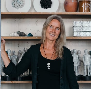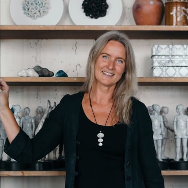 Eva Larsson arbetar huvudsakligen skulpturalt i brons, terrakotta och sten. Den rakubrända leran ger varje skulptur en föränderlig yta där naturen bli delaktig i processen. I bronsgjutningarna laborerar hon med uttrycket i patineringen. Genom arbetsprocessen uppstår nya frågor som leder verken vidare.