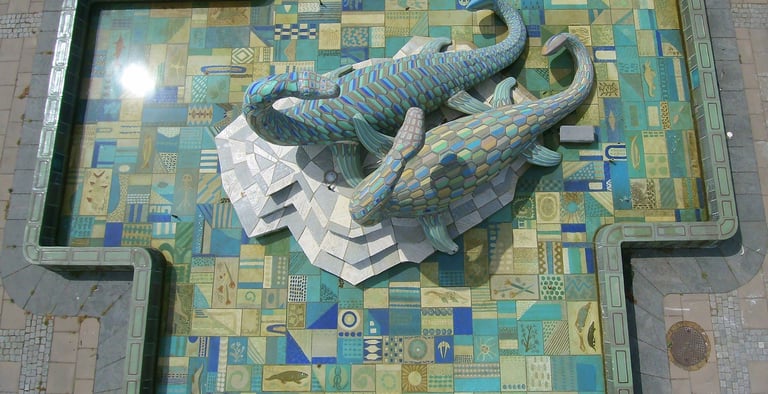 vid fontänen som ligger ett stenkast från Ifö Center.