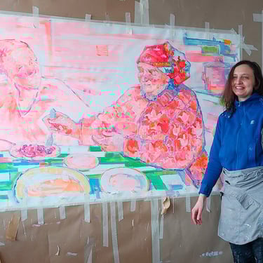 ukrainska konstnären Yuliia Levytska en stark och kompetent kvinnogeneration, vars liv har varit hårt och kantat av stora, geopolitiska händelser. Färgstarka målningar avbildar den äldre landsbygdsbefolkningen i Ukraina. Människor som föddes under eller strax efter andra världskriget, människor som har upplevt Stalins skräckvälde, Sovjetunionens sammanbrott och nu Rysslands anfallskrig – men vars liv och kultur handlar om helt andra saker.