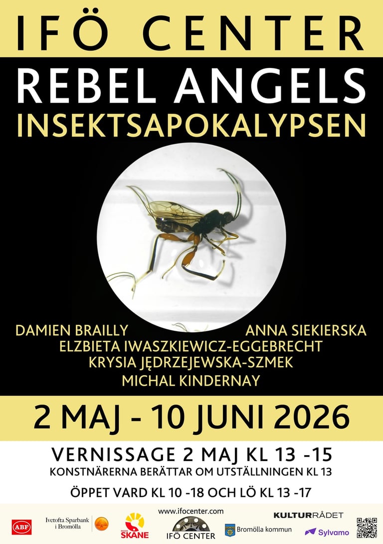 ”Rebel Angels - Insektsapokalypsen” av Damien Brailly (fotograf och filmskapare), Ela Iwaszkiewicz-Eggebrecht (evolutionsbiolog på IBA), Krystyna Jędrzejewska-Szmek (bildkonstnär och biolog), Michal Kindernay (intermediakonstnär och performer) och Anna Siekierska (skulptör) kopplar med Mortons dark ecology-filosofi, som menar att människan inte kan stå utanför naturen, utan själv är en del av det ekosystem som hon förstör. Utställningen sätter ljus på varelser som människor sällan känner empati för, de som uppfattas som fula, äckliga och okarismatiska. Kan vi sätta oss in i deras situation? Övervinna vår motvilja, närma oss dem, se världen ur deras synvinkel? Är en ny relation till insekterna livsavgörande för mänskligheten?
